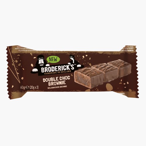 Veganer Proteinriegel mit Brownie Geschmack und Schokoladenüberzug. Mit Süßungsmitteln.