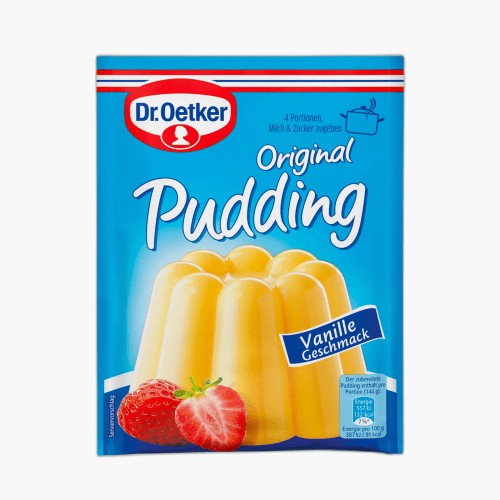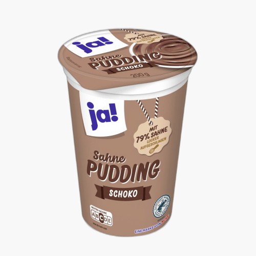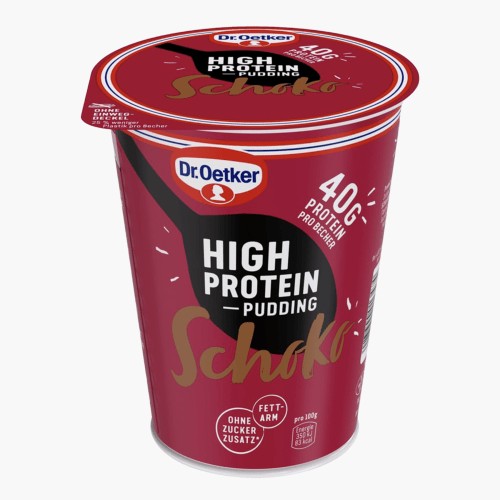 Protein-Pudding mit Haselnussgeschmack. Mit Zucker und Süßungsmitteln.