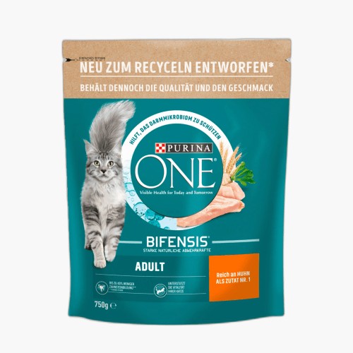 PURINA ONE BIFENSIS ist eine einzigartige Nährstoff-Formel, die wissenschaftlich nachweisbar die natürlichen Abwehrkräfte Ihrer Katze von innen nach außen stärkt. Erhältlich in einer großen Auswahl an schmackhaften Rezepturen mit hochwertigen Zutaten, wie zum Beispiel mit Huhn als Hauptzutat, unterstützt PURINA ONE BIFENSIS die natürliche Abwehr Ihrer Katze
