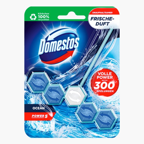 Der Domestos Power 5 WC Stein Limette hält die Toilette sauber, glänzend und frisch. Der WC Reiniger ist mehr als nur ein WC Stein: Der angenehme, langanhaltende Duft nach fruchtigen Limetten, wirkt auch zwischen den Spülungen und verspricht kraftvolle Frische und Sauberkeit für das WC. Domestos Power 5 steht dabei für Hygiene-Kraft, Langzeitfrische, Anti-Kalk-Schutz, Kraftschaum und Glanz-Formel. Spülung für Spülung gibt der Domestos WC Reiniger einen reichhaltigen Schaum frei, schützt vor Kalkablagerungen und entfernt Schmutz. Zudem lässt er die Toilettenschüssel strahlend glänzen und sorgt für einen intensiven und langanhaltenden Limetten-Duft im Badezimmer, auch zwischen den Spülungen. Mit dem zu 100% recycelbaren Plastikkörbchen ist der Domestos Toilettenstein eine effektive und nachhaltige Lösung für die WC Pflege. Anwendung: Den Bügel am Domestos WC-Stein-Körbchen entfalten und das Körbchen dort am Beckenrand einhängen, wo die Spülung am stärksten ist. Anschließend gründlich mit klarem Wasser die Hände waschen. Zum Schluss einfach und umweltschonend Umverpackung und nach Gebrauch das leere Plastikkörbchen über die Recyclingsysteme entsorgen. Doppelt hält besser! Domestos Kraft & Frische WC-Gel und Domestos Power 5 WC-Steine sind das Power-Duo für Sauberkeit und Frische im Badezimmer. Wir haben unsere Toilettenreiniger und Toilettensteine für eine perfekte WC-Hygiene entwickelt: Das...